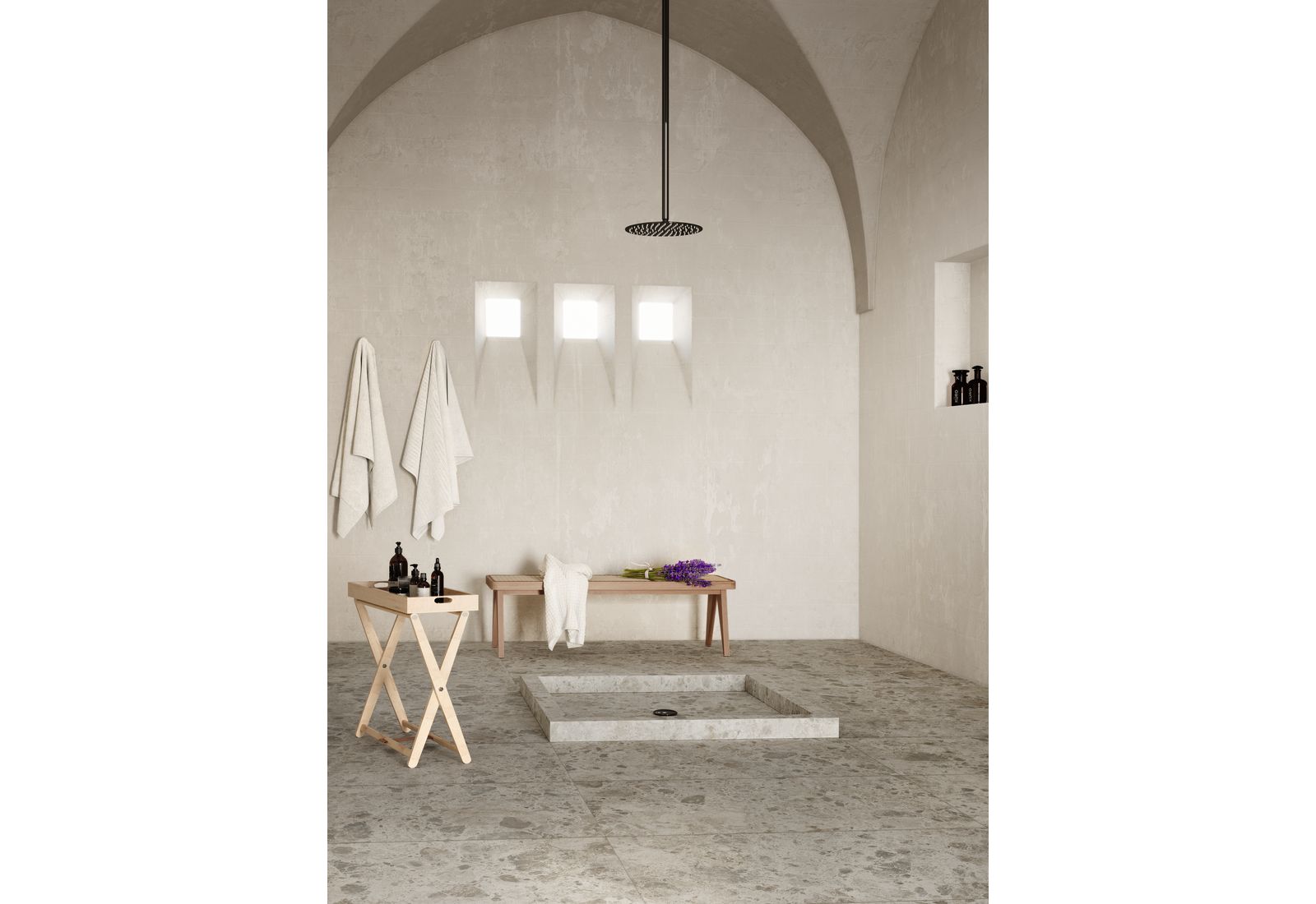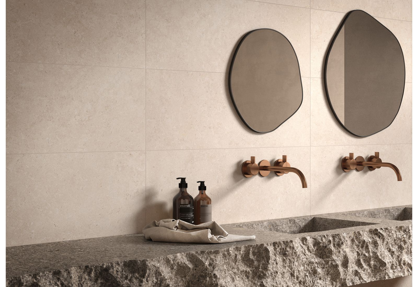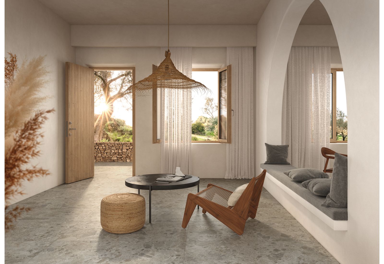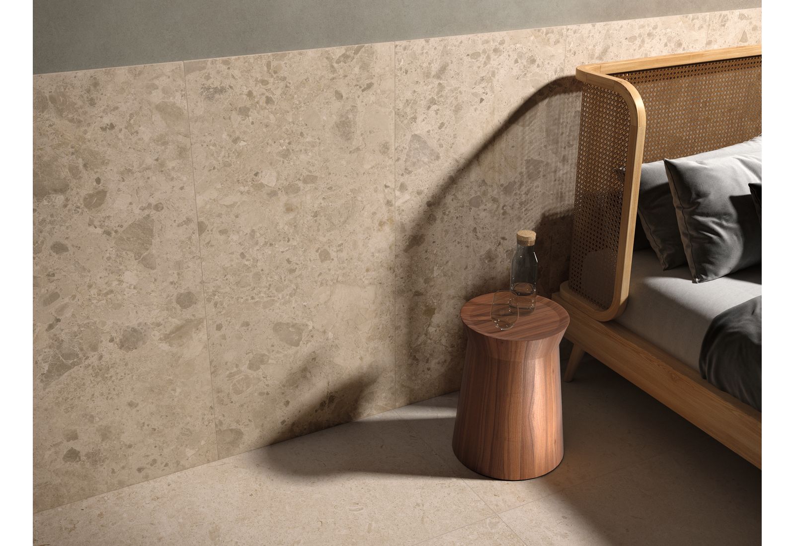 Ragno Eterna – это итальянская коллекция для оформления внутренних помещений дома и террас. Визуально плитка напоминает морские камни, позволяя оформлять интерьер в разных стилях. Коллекция включает элементы, выполненные в цветовых решениях Arena, Blanco, Greige, Mix Beige, Mix Gris, Mix Multicolor. «Оживить» монотонную картинку позволят вставки из темного мрамора.