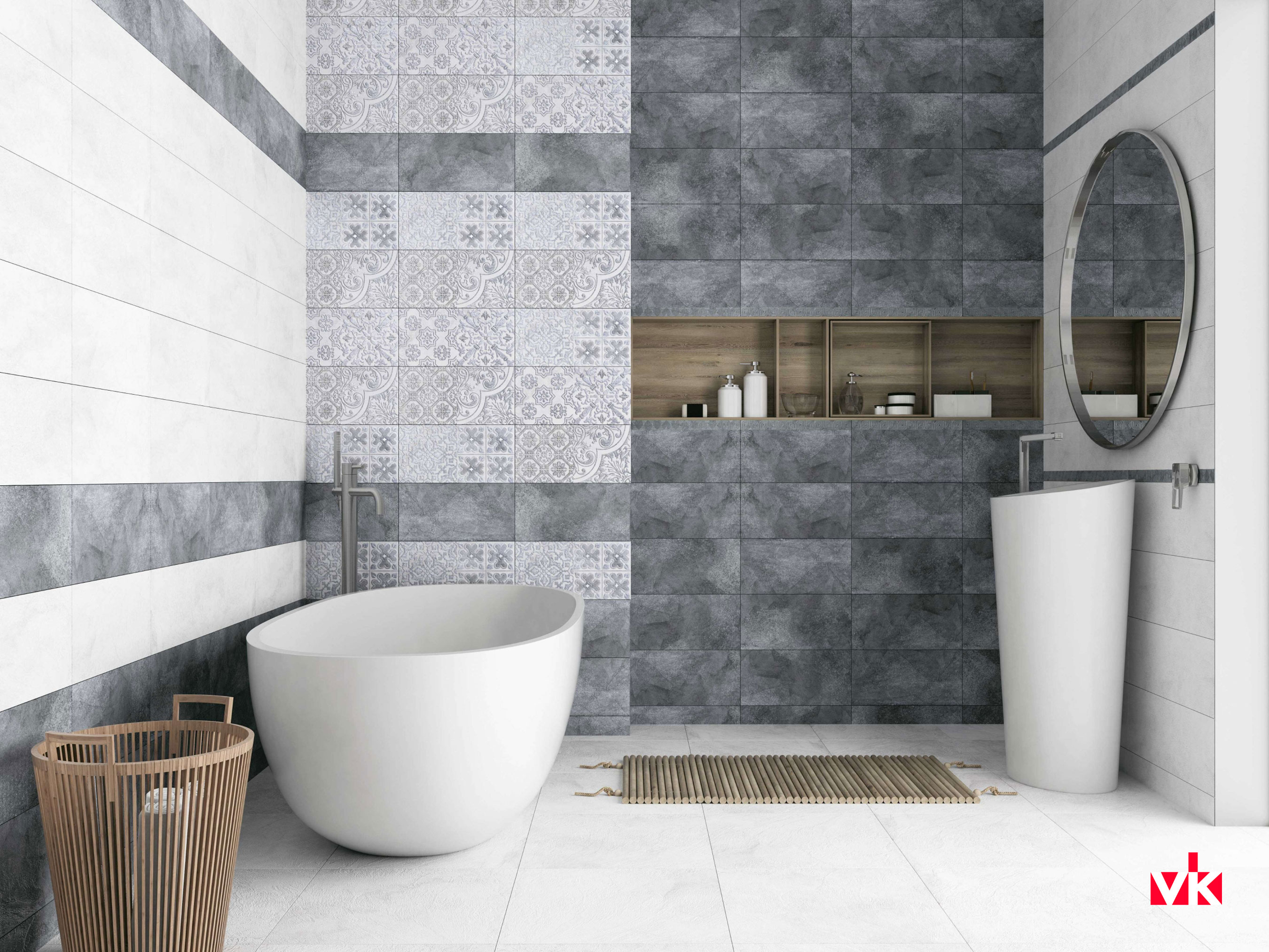 - облицовочная плитка в форме прямоугольников размером 200х400 мм (серые, светло- и темно-серые);